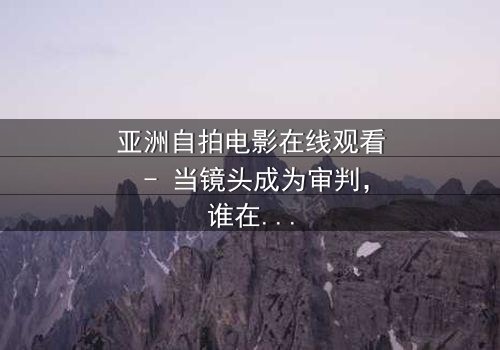 升华主题,这部作品提醒我们,自拍不仅是记录,更是权力与责任的博弈。它给出了观看价值:通过紧张的情节和真实的情感,让观众在娱乐中思考隐私、道德和自由。无论你是电影爱好者还是社会观察者,这部亚洲自拍电影都将带给你深刻的启示。
